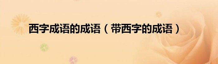 大家好,小晋来为大家解答以下问题,关于西字成语的成语,带西字的成语很多人还不知道,今天让我们一起来看看吧!