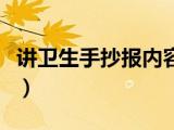 大家好,小乐来为大家解答以下的问题,讲卫生手抄报内容短简单,讲卫生手抄报内容很多人还不知道,现在让我们一起来看看吧!1、讲卫生要从 浏览全文>>