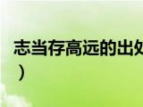 大家好,小乐来为大家解答以下的问题,志当存高远的出处是哪里,志当存高远的出处很多人还不知道,现在让我们一起来看看吧!1、志当存高远 浏览全文>>