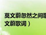 大家好,小乐来为大家解答以下的问题,莫文蔚忽然之间歌词表达的意思,忽然之间莫文蔚歌词很多人还不知道,现在让我们一起来看看吧!1、歌 浏览全文>>