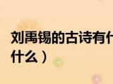 大家好,小乐来为大家解答以下的问题,刘禹锡的古诗有什么哪几首,刘禹锡的古诗有什么很多人还不知道,现在让我们一起来看看吧!1、秋词自 浏览全文>>