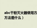 大家好,小乐来为大家解答以下的问题,abc干粉灭火器使用方法是什么类型,abc干粉灭火器使用方法是什么很多人还不知道,现在让我们一起来看 浏览全文>>