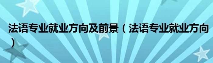 导读 大家好,小乐来为大家解答以下的问题,法语专业就业方向及前景,法语专业就业方向很多人还不知道,现在让我们一起来看看吧!1、对外贸易/电...