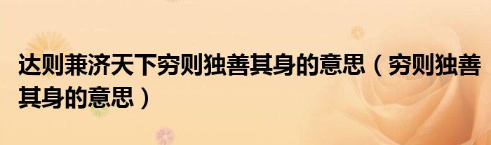 达则兼济天下穷则独善其身的意思(穷则独善其身的意思)