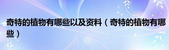 奇特的植物有哪些以及资料(奇特的植物有哪些)
