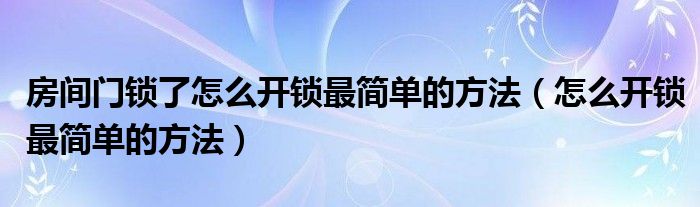 房间门锁了怎么开锁最简单的方法(怎么开锁最简单的方法)