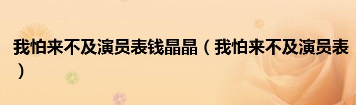 大家好,小乐来为大家解答以下的问题,我怕来不及演员表钱晶晶,我怕来不及演员表很多人还不知道,现在让我们一起来看看吧!
