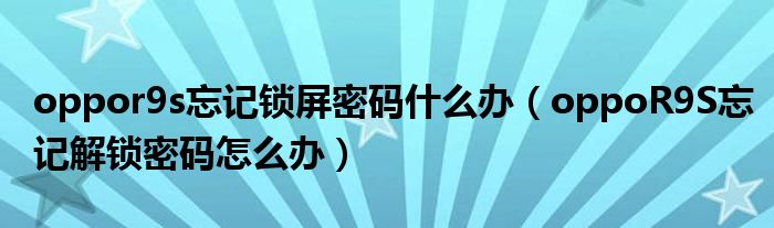 oppor9s忘记锁屏密码什么办(oppoR9S忘记解锁密码怎么办)