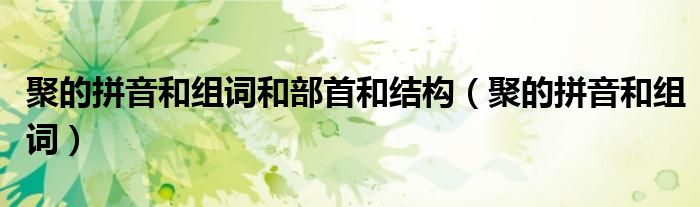 聚的拼音和组词和部首和结构(聚的拼音和组词)
