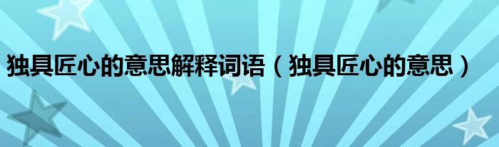 导读 大家好,小乐来为大家解答以下的问题,独具匠心的意思解释词语,独具匠心的意思很多人还不知道,现在让我们一起来看看吧!1、[解释]:匠心...