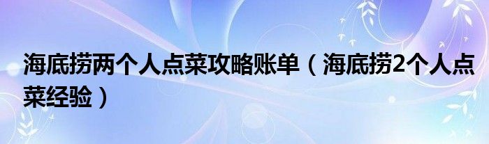 大家好,小乐来为大家解答以下的问题,海底捞两个人点菜攻略账单,海底捞2个人点菜经验很多人还不知道,现在让我们一起来看看吧!