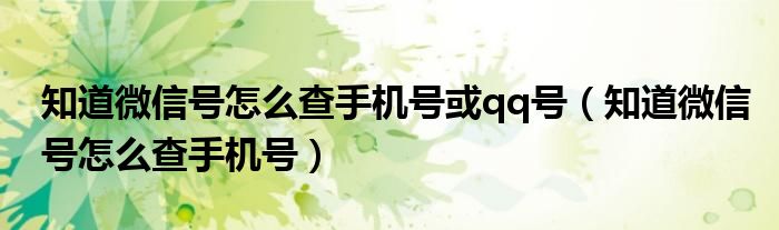 知道微信号怎么查手机号或qq号(知道微信号怎么查手机号)