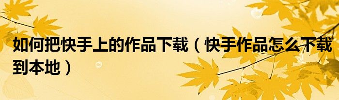如何把快手上的作品下载(快手作品怎么下载到本地)