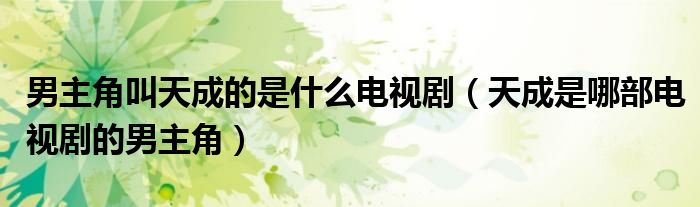 男主角叫天成的是什么电视剧(天成是哪部电视剧的男主角)