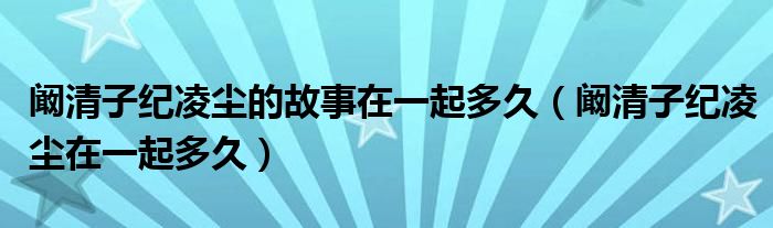 阚清子纪凌尘的故事在一起多久(阚清子纪凌尘在一起多久)