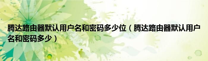 腾达路由器默认用户名和密码多少位(腾达路由器默认用户名和密码多少)