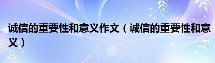 诚信的重要性和意义作文(诚信的重要性和意义)