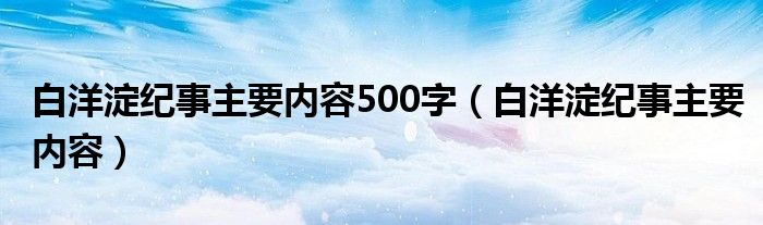 大家好,小乐来为大家解答以下的问题,白洋淀纪事主要内容500字,白洋淀纪事主要内容很多人还不知道,现在让我们一起来看看吧!