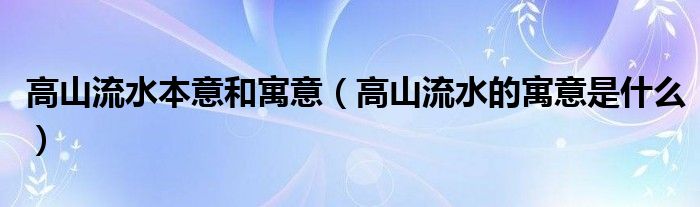 大家好,小乐来为大家解答以下的问题,高山流水本意和寓意,高山流水的寓意是什么很多人还不知道,现在让我们一起来看看吧!