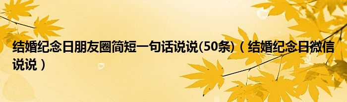 导读 大家好,小乐来为大家解答以下的问题,结婚纪念日朋友圈简短一句话说说(50条),结婚纪念日微信说说很多人还不知道,现在让我们一起来看看吧...
