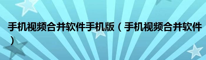 手机视频合并软件手机版(手机视频合并软件)