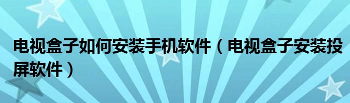 电视盒子如何安装手机软件(电视盒子安装投屏软件)