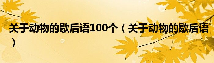 大家好,小乐来为大家解答以下的问题,关于动物的歇后语100个,关于动物的歇后语很多人还不知道,现在让我们一起来看看吧!