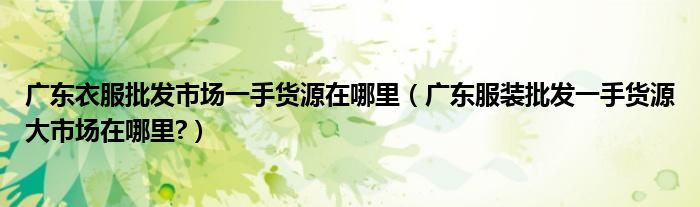 广东衣服批发市场一手货源在哪里(广东服装批发一手货源大市场在哪里?)