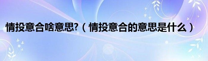 导读 大家好,小乐来为大家解答以下的问题,情投意合啥意思?,情投意合的意思是什么很多人还不知道,现在让我们一起来看看吧!1、情投意合:发音...
