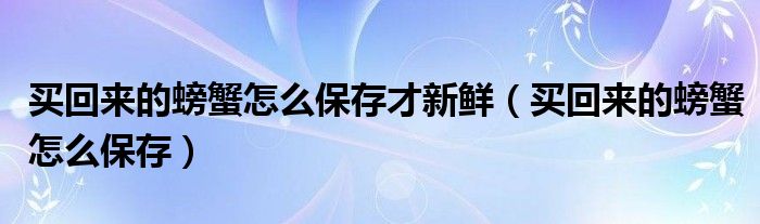 买回来的螃蟹怎么保存才新鲜(买回来的螃蟹怎么保存)