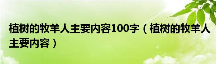 植树的牧羊人主要内容100字(植树的牧羊人主要内容)