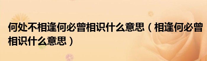 何处不相逢何必曾相识什么意思(相逢何必曾相识什么意思)