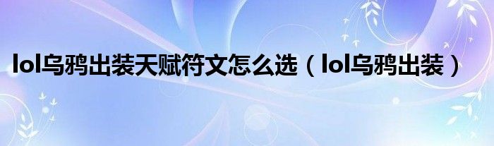 lol乌鸦出装天赋符文怎么选(lol乌鸦出装)