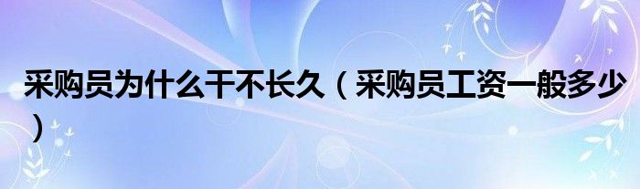 大家好,小乐来为大家解答以下的问题,采购员为什么干不长久,采购员工资一般多少很多人还不知道,现在让我们一起来看看吧!