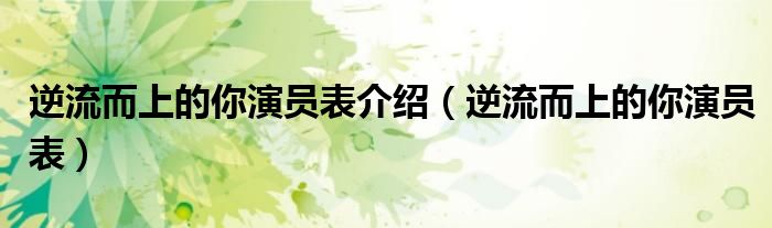 逆流而上的你演员表介绍(逆流而上的你演员表)