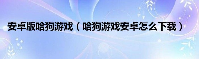 安卓版哈狗游戏(哈狗游戏安卓怎么下载)