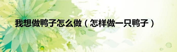 大家好,小乐来为大家解答以下的问题,我想做鸭子怎么做,怎样做一只鸭子很多人还不知道,现在让我们一起来看看吧!
