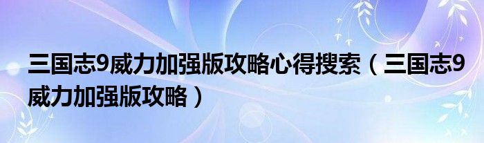 三国志9威力加强版攻略心得搜索(三国志9威力加强版攻略)