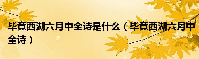 毕竟西湖六月中全诗是什么(毕竟西湖六月中全诗)