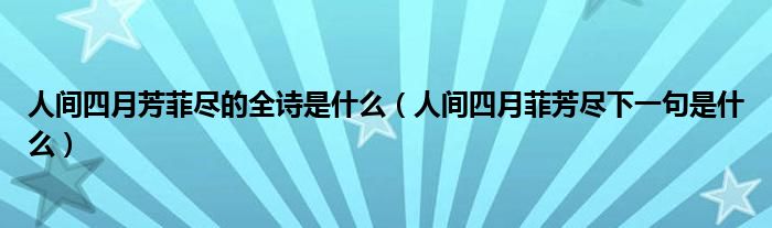 人间四月芳菲尽的全诗是什么(人间四月菲芳尽下一句是什么)
