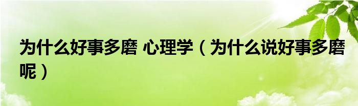为什么好事多磨 心理学(为什么说好事多磨呢)