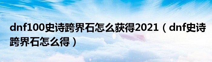 dnf100史诗跨界石怎么获得2021(dnf史诗跨界石怎么得)