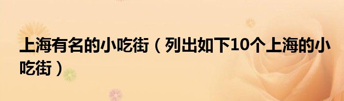 上海有名的小吃街(列出如下10个上海的小吃街)