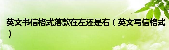 导读 大家好,小乐来为大家解答以下的问题,英文书信格式落款在左还是右,英文写信格式很多人还不知道,现在让我们一起来看看吧!1、信头:指发...