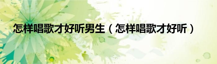 怎样唱歌才好听男生(怎样唱歌才好听)