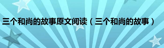 导读 大家好,小乐来为大家解答以下的问题,三个和尚的故事原文阅读,三个和尚的故事很多人还不知道,现在让我们一起来看看吧!1、三个和尚的故...