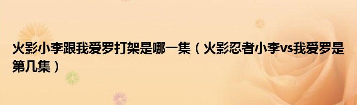导读 大家好,小乐来为大家解答以下的问题,火影小李跟我爱罗打架是哪一集,火影忍者小李vs我爱罗是第几集很多人还不知道,现在让我们一起来看看...