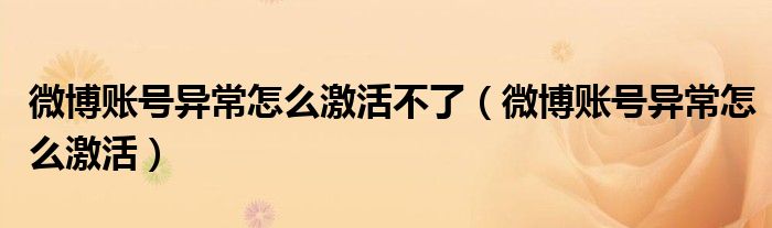 微博账号异常怎么激活不了(微博账号异常怎么激活)