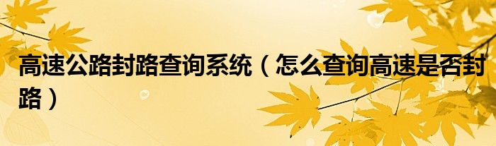高速公路封路查询系统(怎么查询高速是否封路)