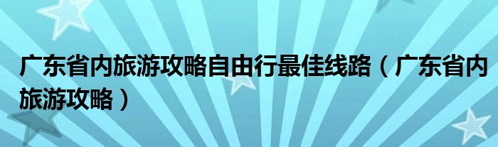 广东省内旅游攻略自由行最佳线路(广东省内旅游攻略)